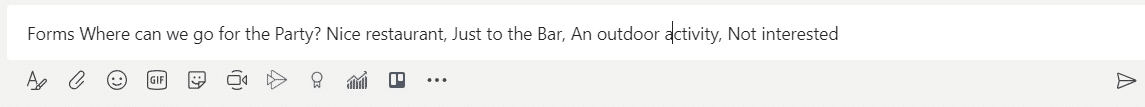 As you can see in the image below, the Bot reminds you of this formatting when you type ‘@Forms’: