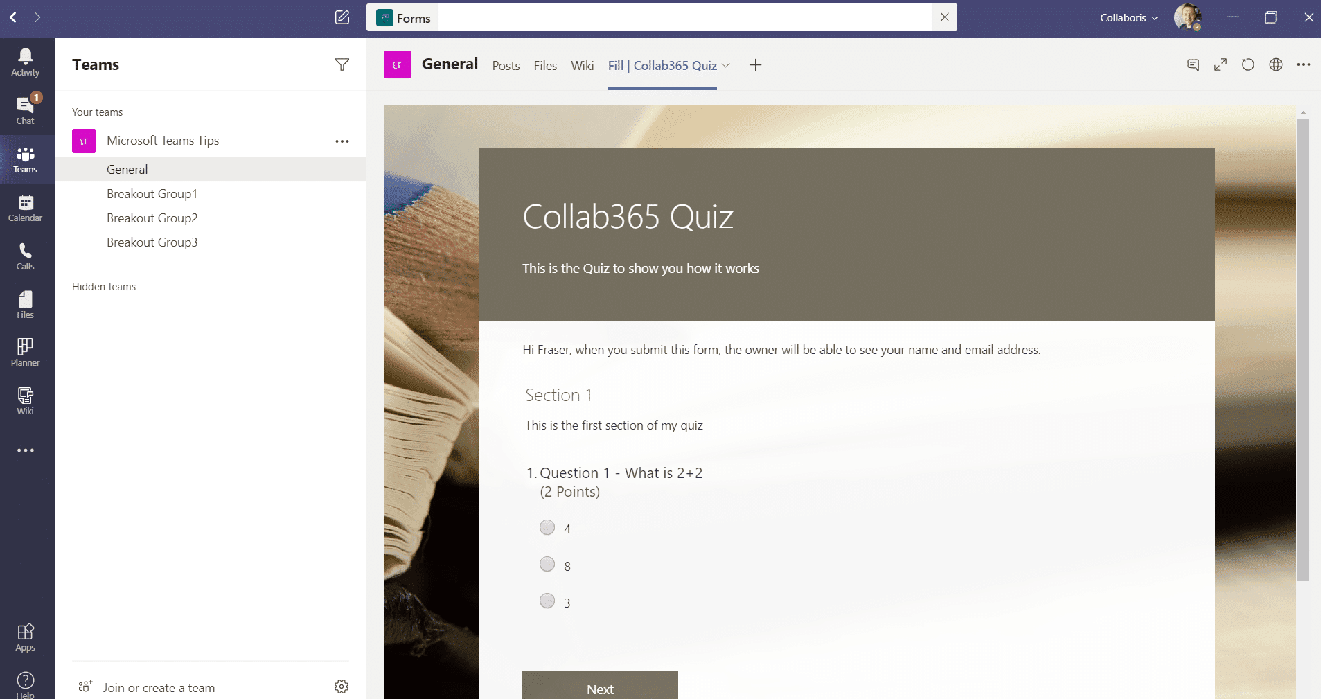 Now, let’s create quizzes or tests to show in your Microsoft Teams Tab.