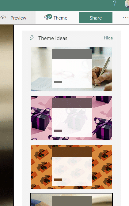 Once your quiz is ready, don’t forget to make it look beautiful by adding a theme using the menu in the top right of the window.